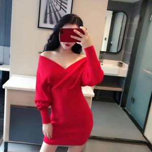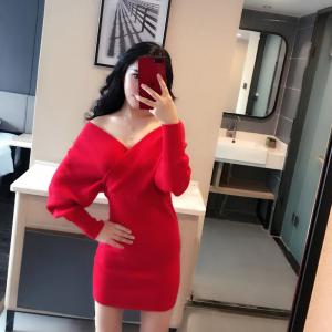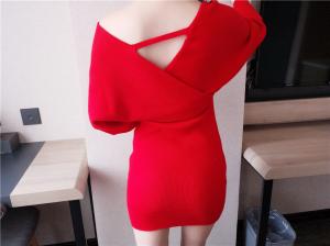 オフショルニットワンピース カシュクールワンピース ざっくりニット バックデザイン セクシー タイトスカート ミニ丈ワンピース