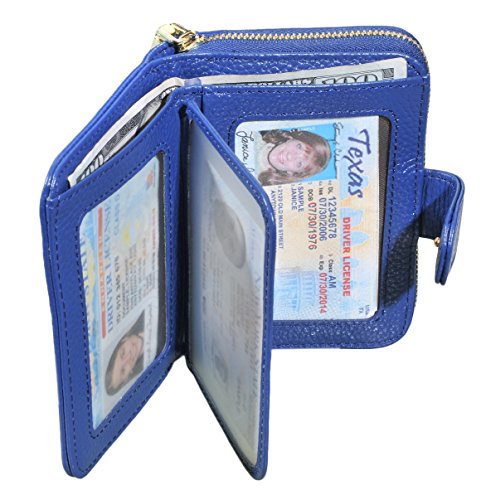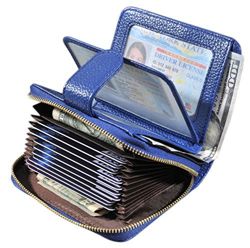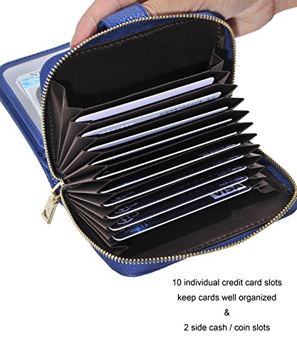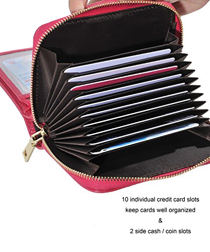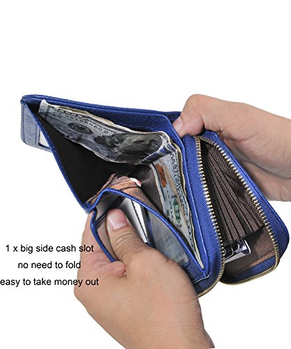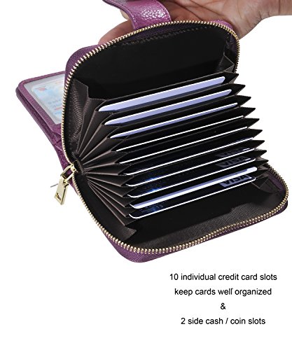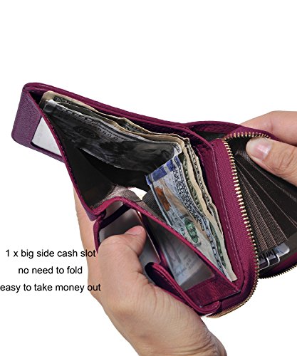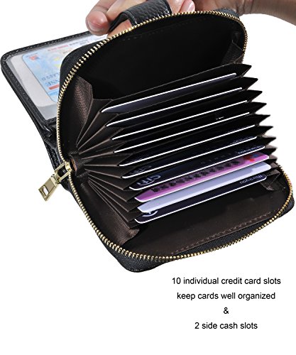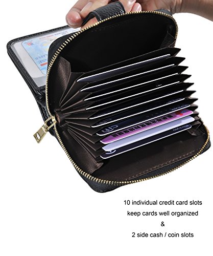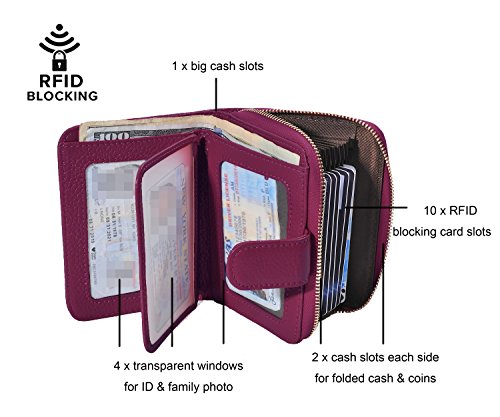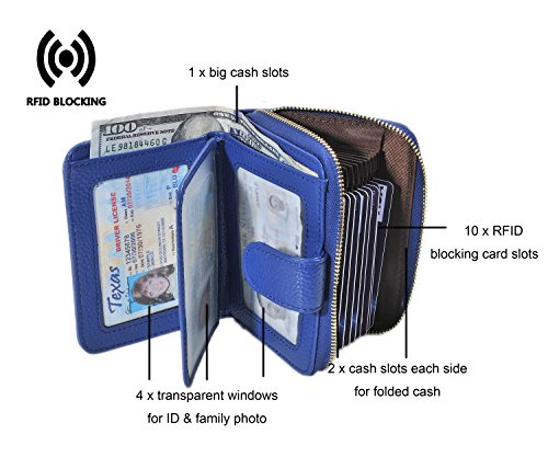 INNOVATION 2 IN 1 [ CARD CASE WALLET ]: 1 x zippered compartment = 10 x RFID blocking card slots 2 x cash slots (hold folded cash and coins) 1 buckle compartment = 1 x big cash slots 4 x transparent ID windows