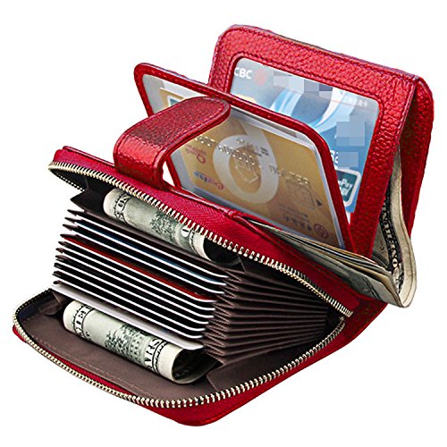 BASIC PARAMETER: SIZE: 4.72"" x 3.74"" x 1.38""(12*9.5*3.5 CM). MATERIAL: 100% top quality genuine cowhide leather - very soft, fine and smooth. Polyester lining - Firmer and more durable than PVC material, and there will be no aging damage. Top grade durable zipper - tested by hundreds of thousands of times, very smooth and easy to pull. Nylon wire to sew - make it neat and matched well with the genuine leather credit card case.
