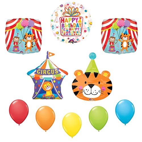 -. Feature : (1) 31" Circus Tiger Foil Balloon / (1) 36" Big Top Circus Lion Tent Foil Balloon / (1) 26" Birthday Present See-Thru Balloon / (2) 18" Square Circus Theme Foil Balloons / (5) 11" Assorted Latex balloons