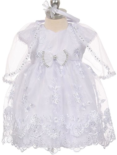 Simple and elegant infant baptism dress. Matching sheer organza cape and headband are included. True to size. Made in USA Brand : BluNight Collection Product Dimensions(LxWxH) :