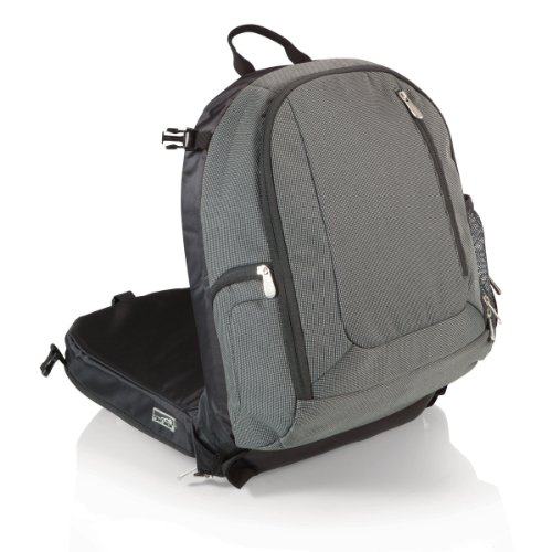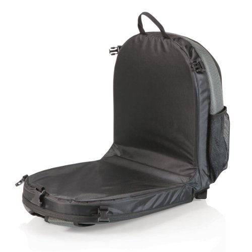 Stadium bleacher seat cooler backpack. PT-Navigator by Picnic Time. Integrated folding chair with cushion and insulated cooler for sport, camping or outdoor use. Gray.