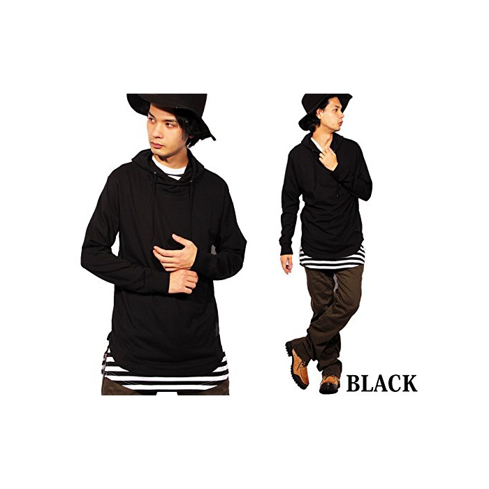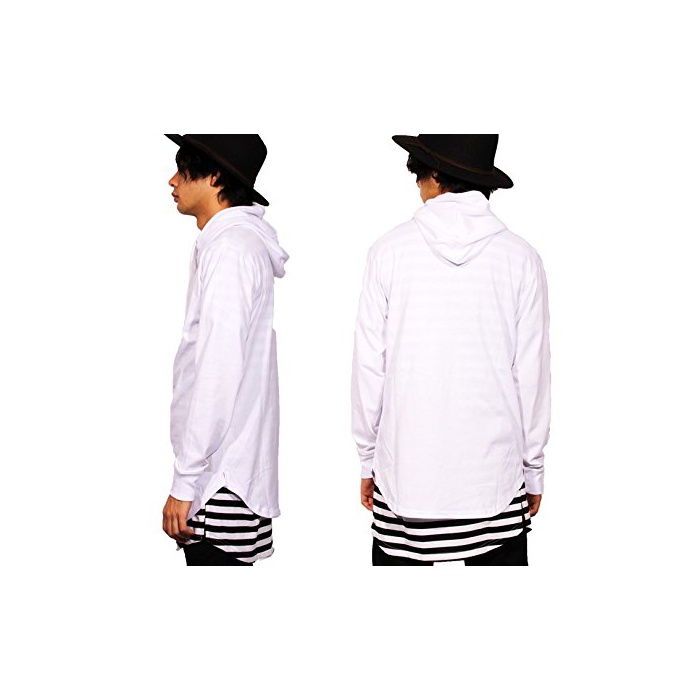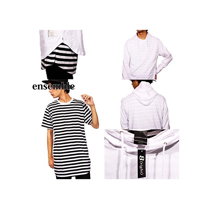 (에이트(eight)) 8(eight)2color 롱 길이 보더 (pullover)풀오버 파커 반소매T셔츠 부착 앙상블 M 화이트