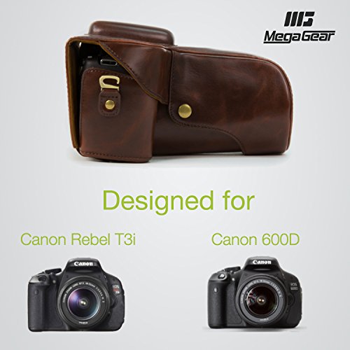 -. Binding : Electronics -. Brand : MegaGear -. Color : brown -. EAN : 0670541874912 -. Feature : Made by excellent leather! Durable! Soft and Smooth-feeling! / High quality, compact, lightweight, extremely durable material and easy to carry / To protect your camera against damages, dust and scratches Generic case bag / IT DOES NOT Includes the Shoulder Strap -. Label : Mega West -. Manufacturer : Mega West -. Model : MG107 -. MPN : MG107 -. PackageQuantity : 1 -. PartNumber : MG107 -. ProductGroup : Photography -. ProductTypeName : CAMERA_BAGS_AND_CASES -. Publisher : Mega West -. ReleaseDate : 2014-10-17 -. Studio : Mega West -. Title : MegaGear ''Ever Ready'' Dark Brown DSLR Camera Case for Canon EOS Rebel T3i 18-55mm IS 18-135mm IS /Canon 600D 18-55mm 18-135mm IS -. UPC : 670541874912