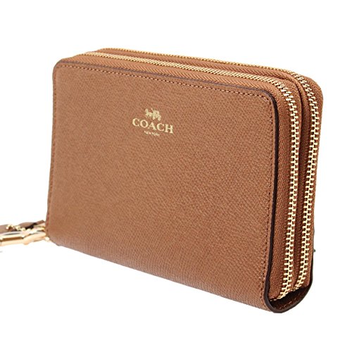 -. Title : Crossgrain Leather Double Zip Phone Wallet in Saddle, F57467 IMSAD