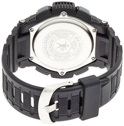 [Description] Round watch in resin with quartz movement and digital display with backlight Features alarm_ chronograph_ dual time_ lap_ and military time functions Buckle closure Water resistant to 330 feet (100 M): suitable for snorkeling_ as well as swimming_ but not diving