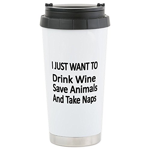 -. Title : CafePress - I JUST WANT TO Drink Wine, Save Animals,And Take N - Stainless Steel Travel Mug, Insulated 16 oz. Coffee Tumbler
