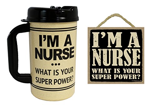 I'm a Nurse What is Your Super Power 32oz Travel Mug and Sign Set