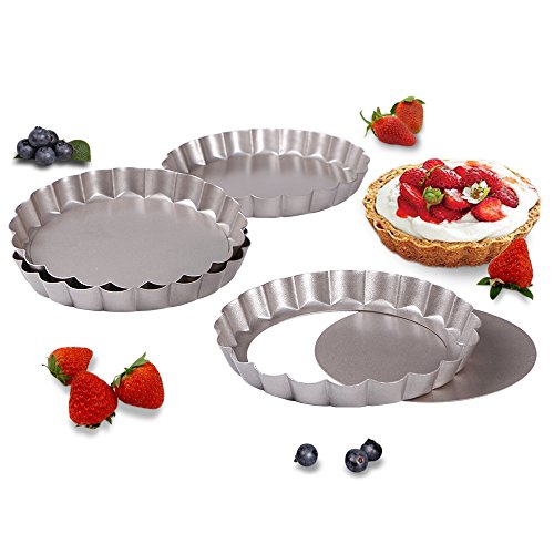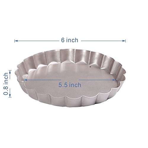 Features: * Item Dimension: Mini Quiche Pan,6 inch diameter x 0.8 inch depth. * Removable bottoms for easy release and clean up will produces a beautiful quiche,tarts or pie. * Cost-effective pans are heavier than most comparable brands, assuring that they will heat evenly for years of baking perfection. * Easy to Clean and Dishwasher-Safe: You can also put it in the dishware and release your hands! * Perfect for creating mini cheese cakes, chocolate tarts, quiches and other delicious desserts. Good choice for the party preparation and home baking.