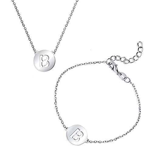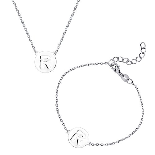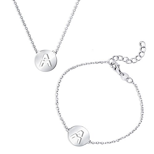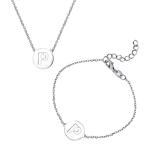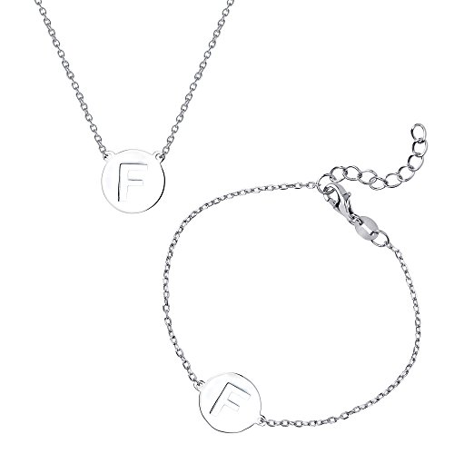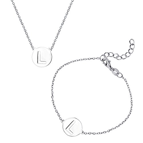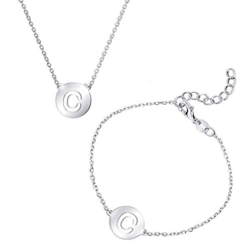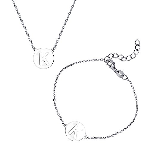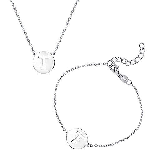 Crafted from 925 sterling silver; The bracelet of this Itilain crafted initial jewelry set features a high polish center disc with the Initial cut-out and a diamond-cut cable chain that can be adjusted from 6 to 7 inches and secures with a lobster claw clasp. Meanwhile, the necklace features a center Initial Cut-Out disc also with a diamond-cut cable chain that can be adjusted from 16 to 18 inches and secures with a lobster claw clasp.