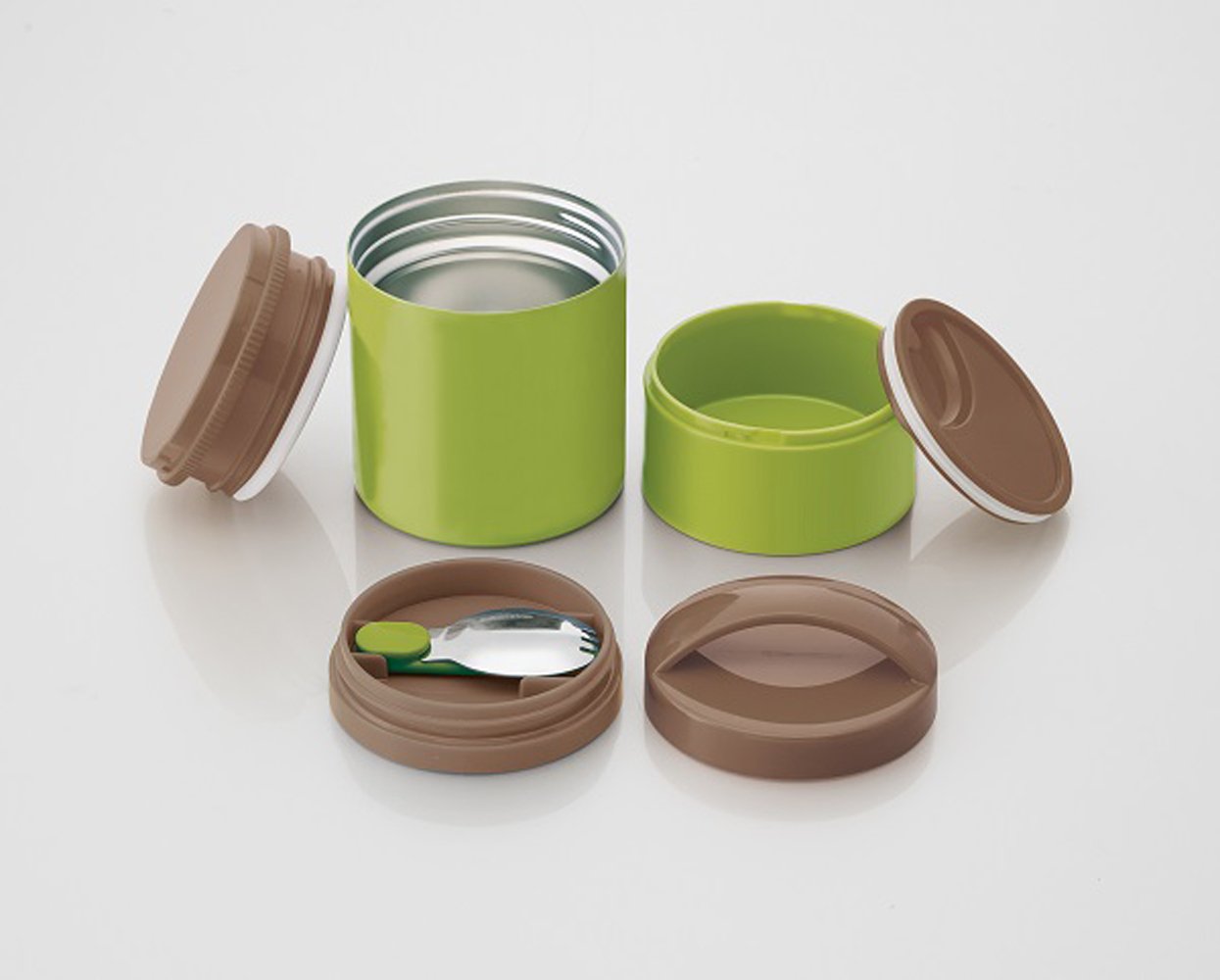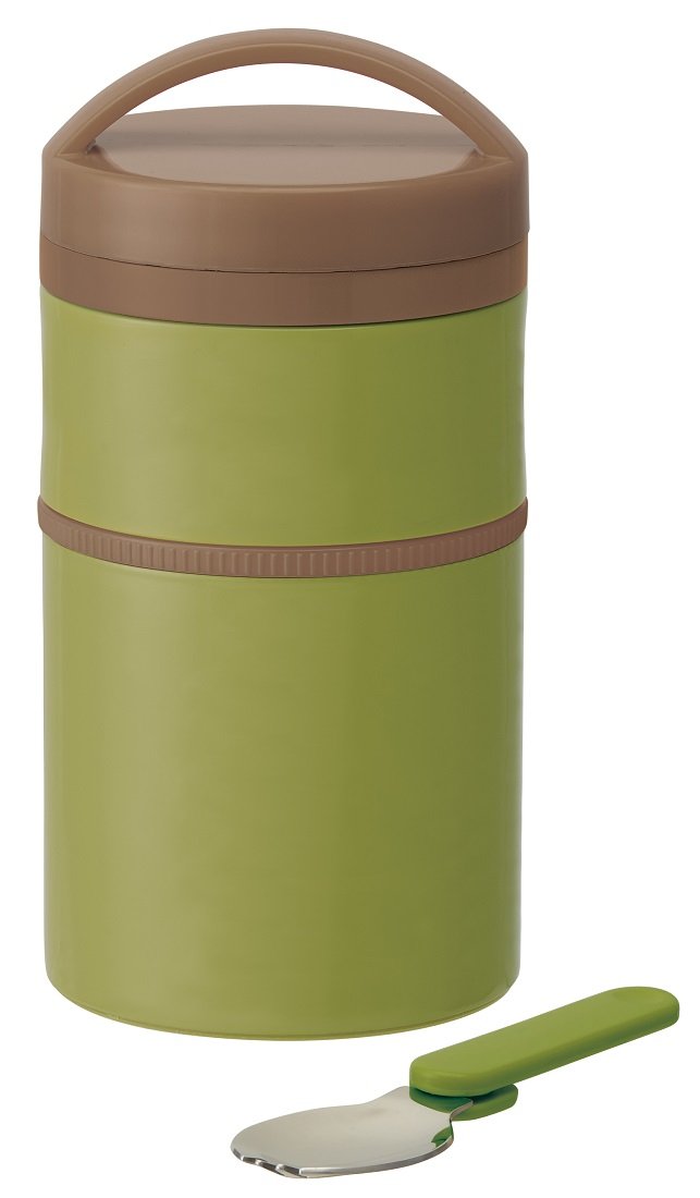 Bottle-type two-stage heat insulation cold lunch jar 400ml earth color moss green LJLRT4