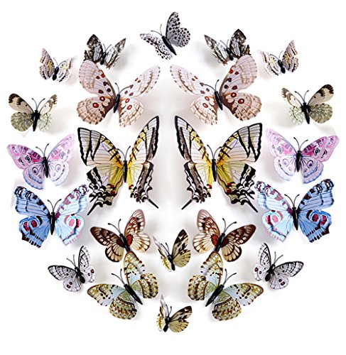 - Vivid butterfly stickers set: 24 pieces artificial butterfly stickers with 4 kinds of sizes,looks likes real butterfly.