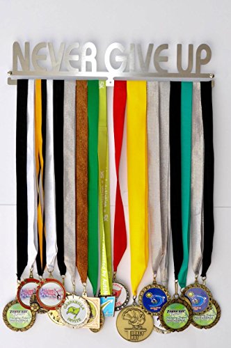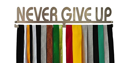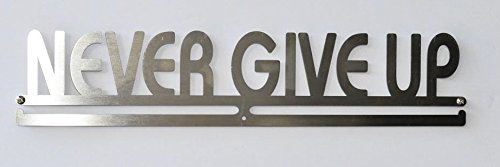 Never Give Up Medal Hanger - Triathlon, Race, Running, Gymnastics, Mud Run Medal Holder / Display- Stainless Steel