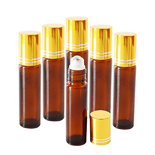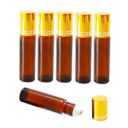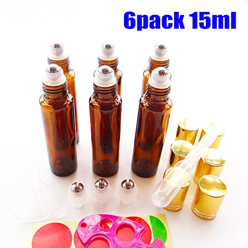 - Complete Bundle - 6x 15ml/0.5oz Empty Amber Glass Roll-on Bottles with GOLD lids w/ free 3ml dropper + mini funnel + extra 3 roller bolls +12 pieces labels