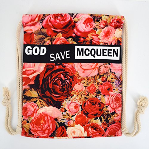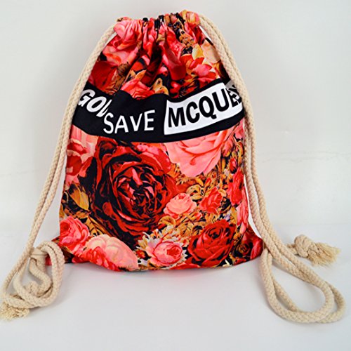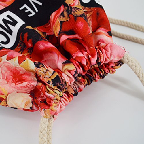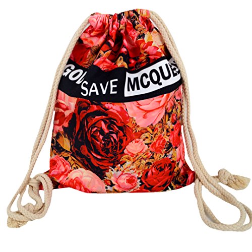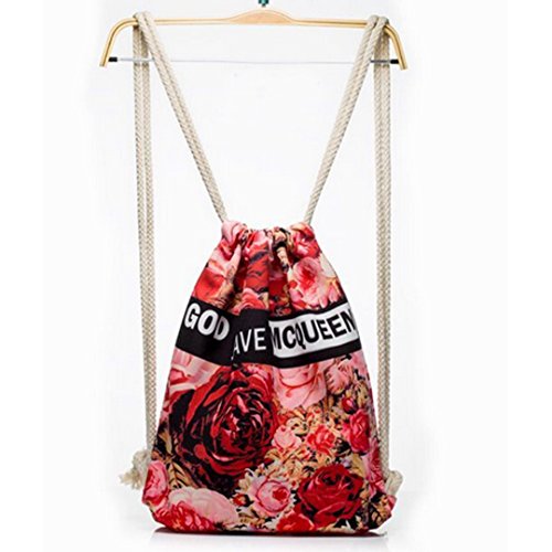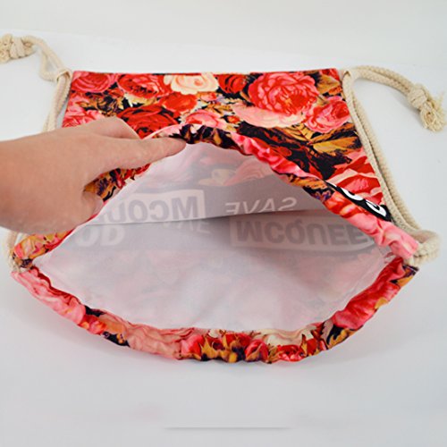 Flower Print Canvas Drawstring Backpack Bag Shoulder Bag Lightweight Backpack Sackpack