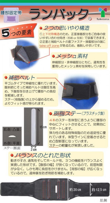 | メッシュタイプで通気性バツグンの腰部固定帯。 |