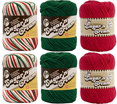- Bundled price is for 6 Holiday color assorted skeins of Lily Sugar'n Cream as shown. Popular for making durable dishcloths. 2 skeins of each: Mistletoe, Red and Dark Pine Green.