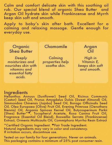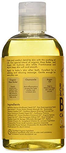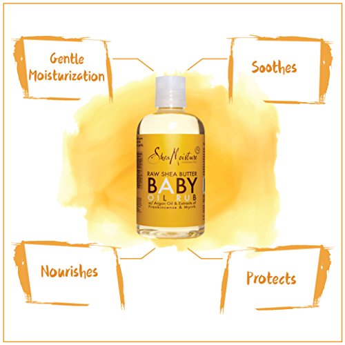 Gentle & Strong Baby StepsRaw Shea Butter Baby Oil Rub from the house of SheaMoisture is the tender care every baby deserves. Certified Organic Raw Shea Butter, rich in fatty acids, blended into this Argan Oil, loaded with Vitamin E, stimulates the nervous system & relaxes baby muscles to ensure a deep, calm sleep. A unique blend of natural ingredients, essential oils & certified organic raw shea butter make this baby oil rub the perfect accessory you need to lully your little one to sleep.