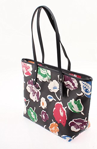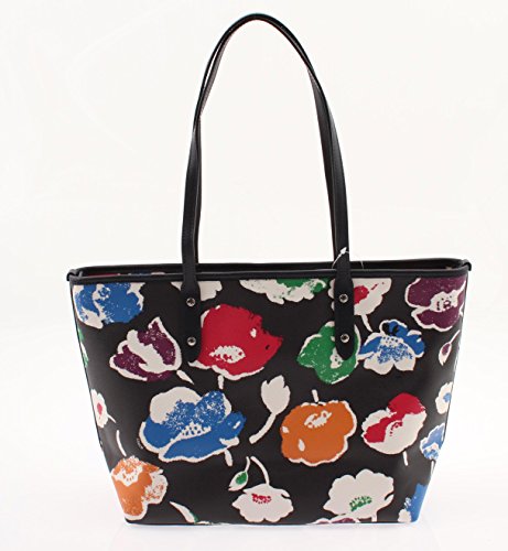 Details Printed coated canvas Inside zip, cell phone and multifunction pockets Zip-top closure, fabric lining Handles with 9 1/2" drop 11 3/4" (L) x 10 1/2" (H) x 5 1/2" (W)