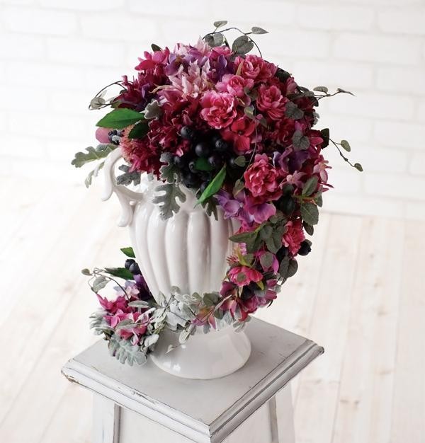 | バラなどの華やかなお花でも、コスモスなどの可憐なお花でも違和感なく飾れるシンプルなヨーロピアンベースです。リビングや玄関を華やかな空間に☆ |