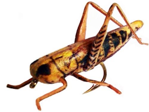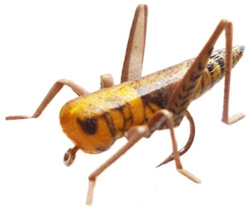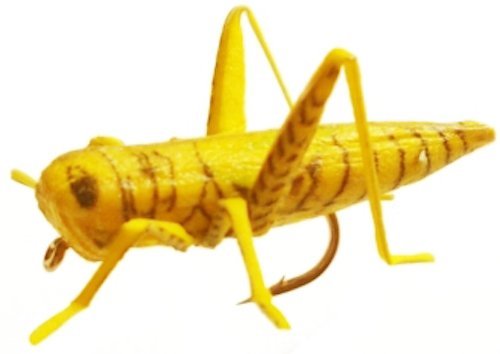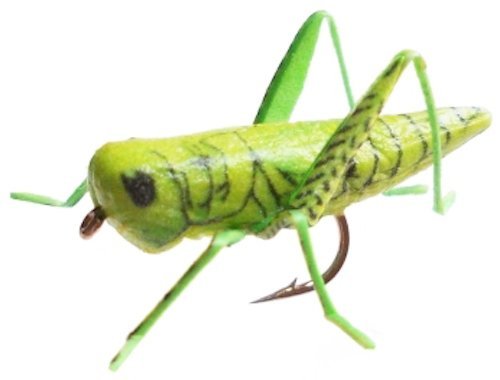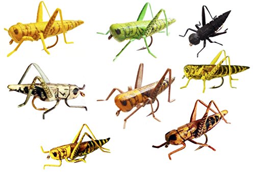 -. Feature : Pack of Eight Grasshopper flies in assorted colors of Tan, Yellow, Green, Gray, Brown, Yellow/Brown, Yellow/Black & Black Cricket (sizes 6 and 8 only) / NEW type of fishing flies - lifelike & durable unlike traditionally tied patterns / Made of fully synthetic materials with laser-etched lifelike body wing markings / Silica-based high-durability legs / Mold-injected high-bouyancy foam body