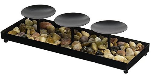Set includes a black metal candle holder with natural stones and three 2.5" diameter pedestals for candles.