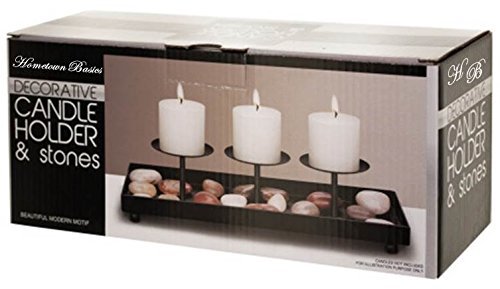 Hometown Basics Modern Three-Pedestal Candle Holder with Stones Set