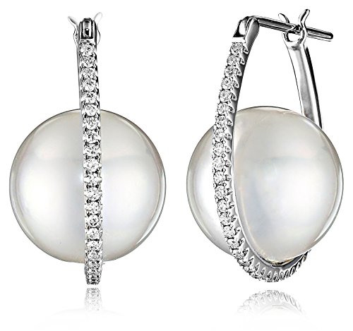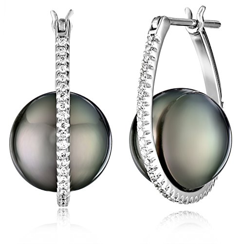 18k gold hoop earrings with Tahitian cultured pearls surrounded by orbit of shared-prong diamonds