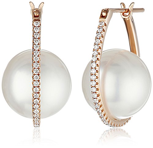 TARA Pearls "Galaxy Collection" 18k Rose Gold Natural White South Sea Cultured Pearl Earrings with Diamonds (1/3 cttw, G-H Color, SI2 Clarity)