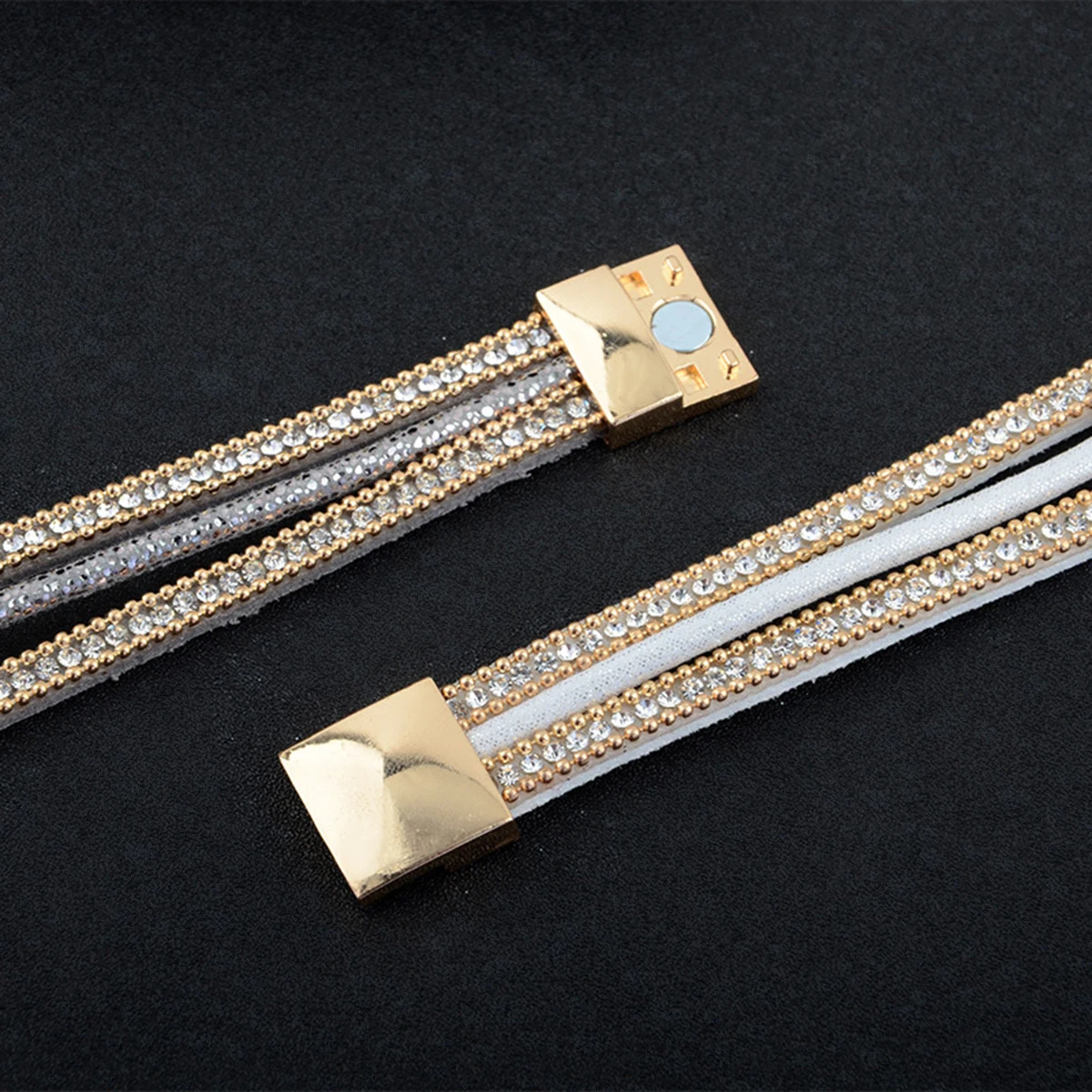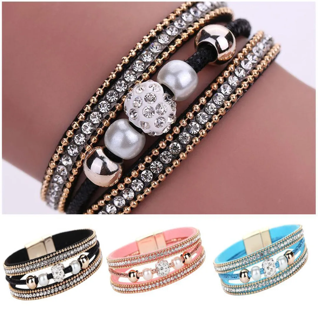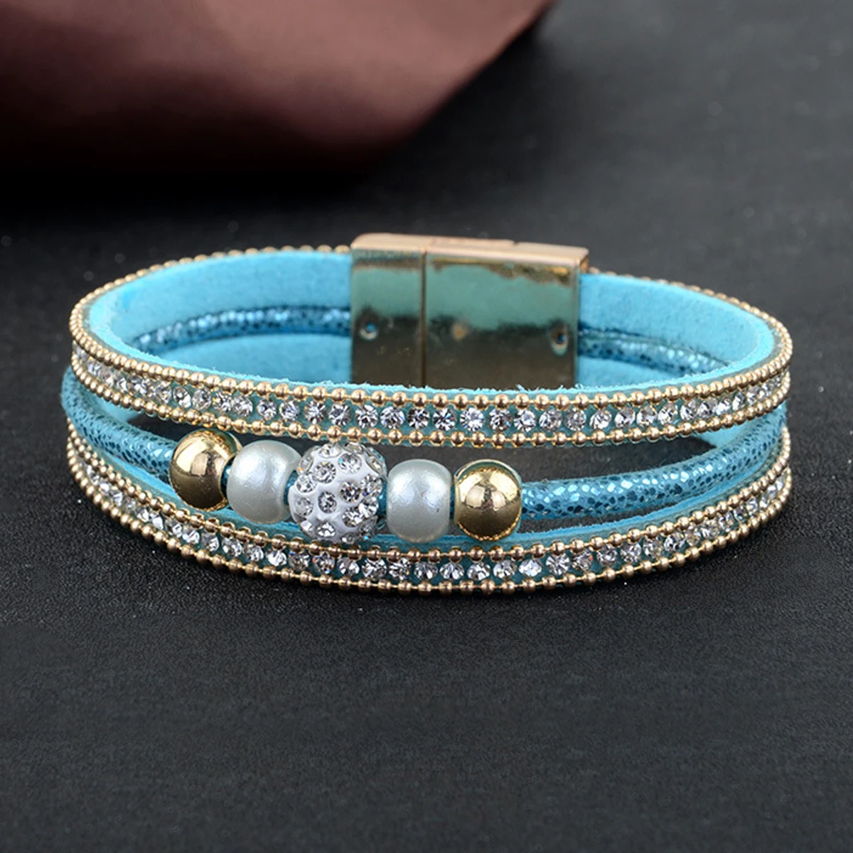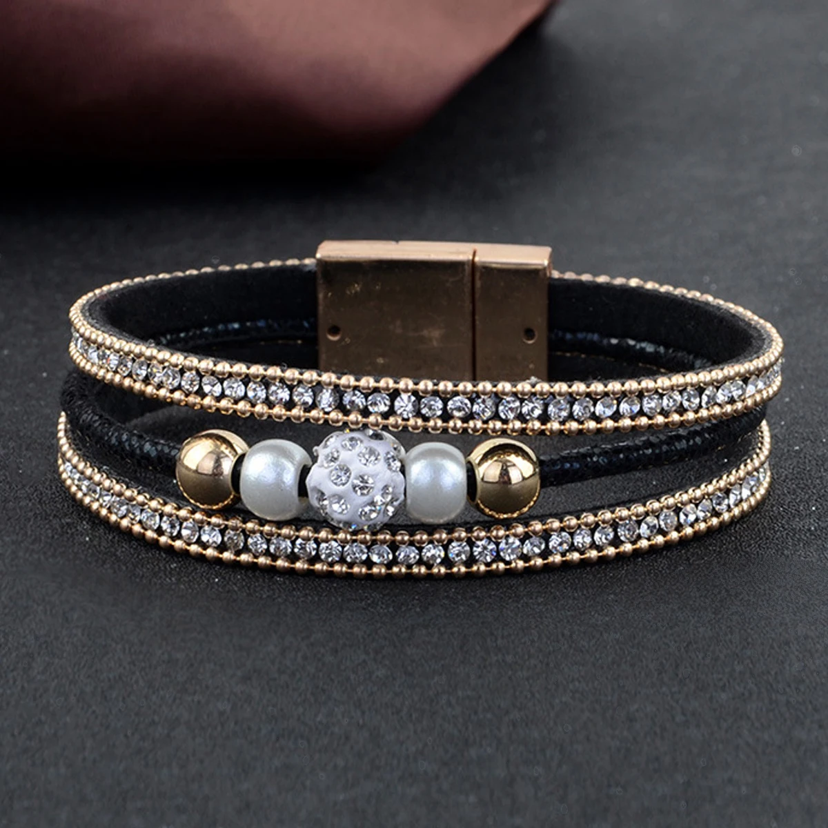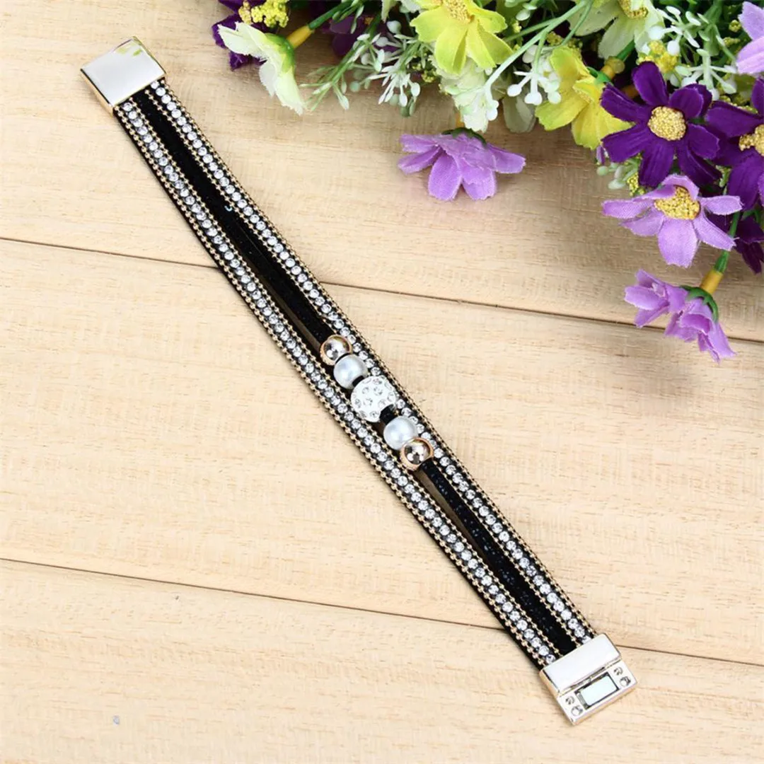 Model Number:Crystal beaded leather bangle,magnetic bracelet