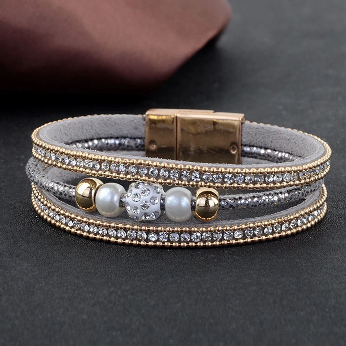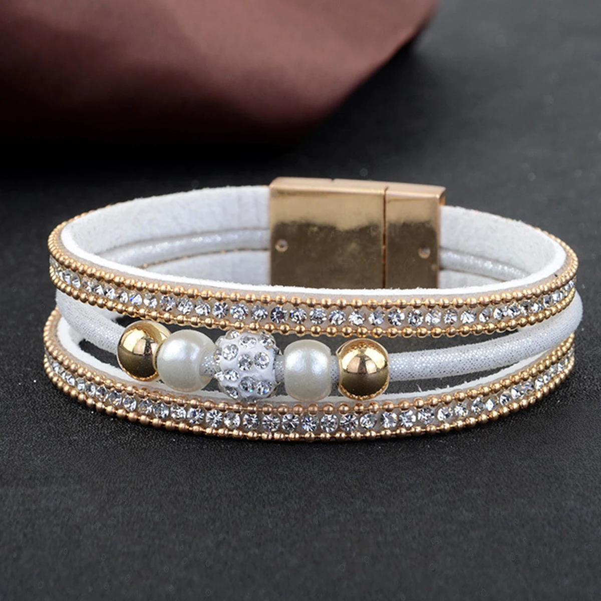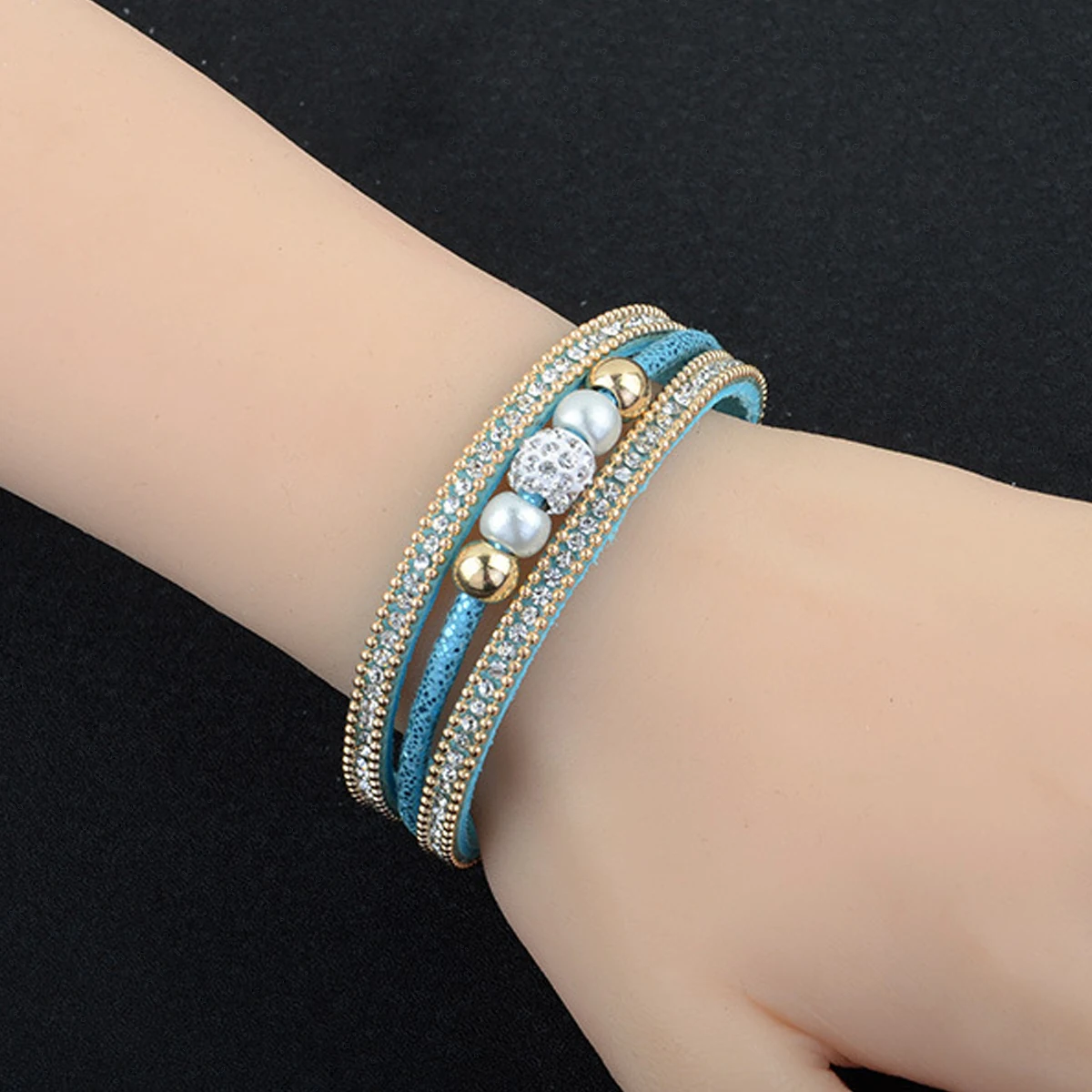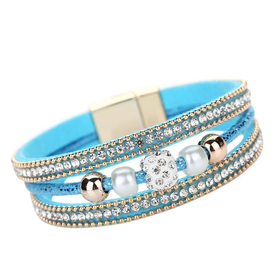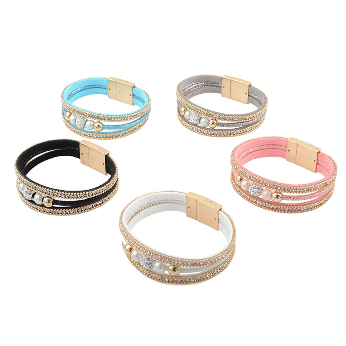 Model Number:Crystal beaded leather bangle,magnetic bracelet