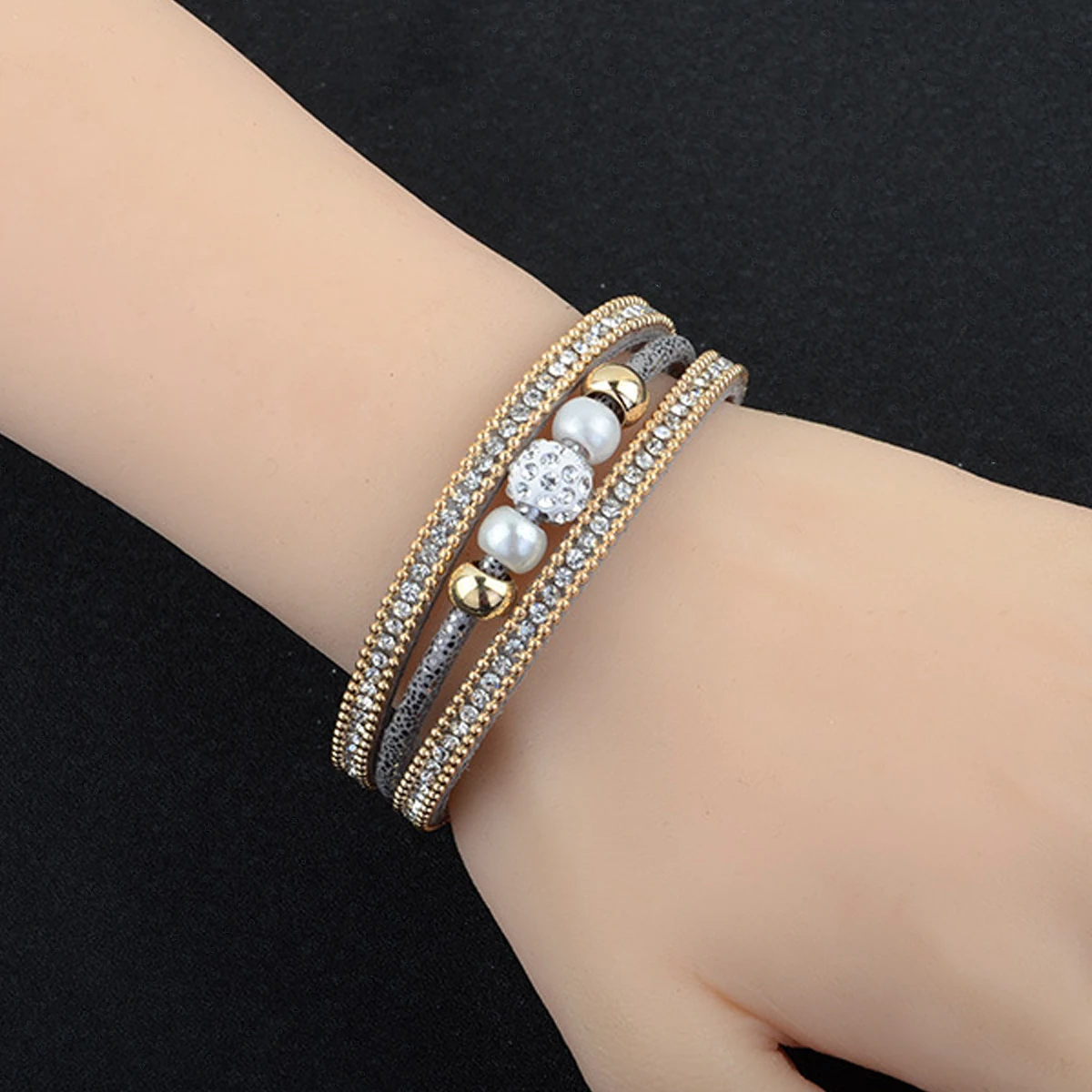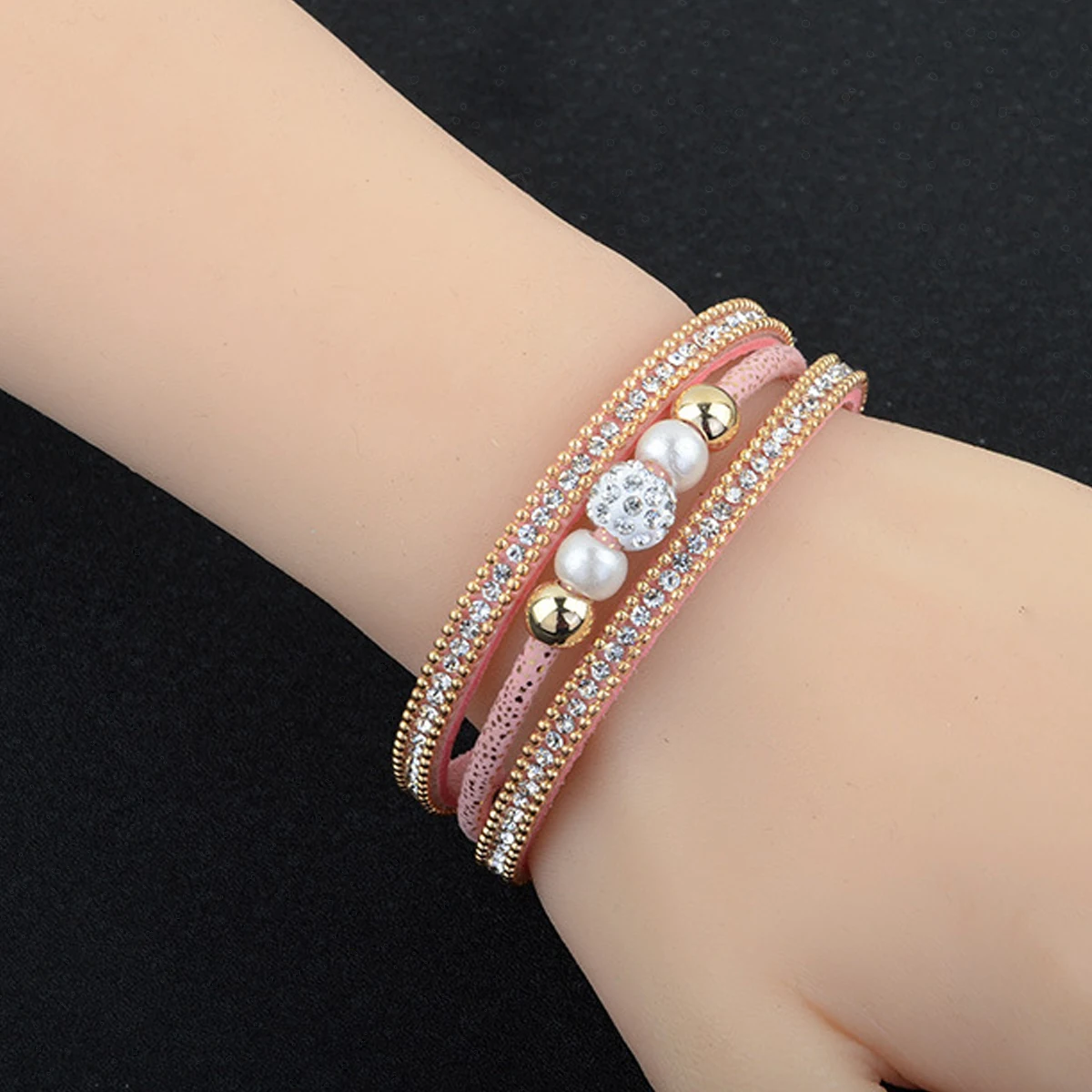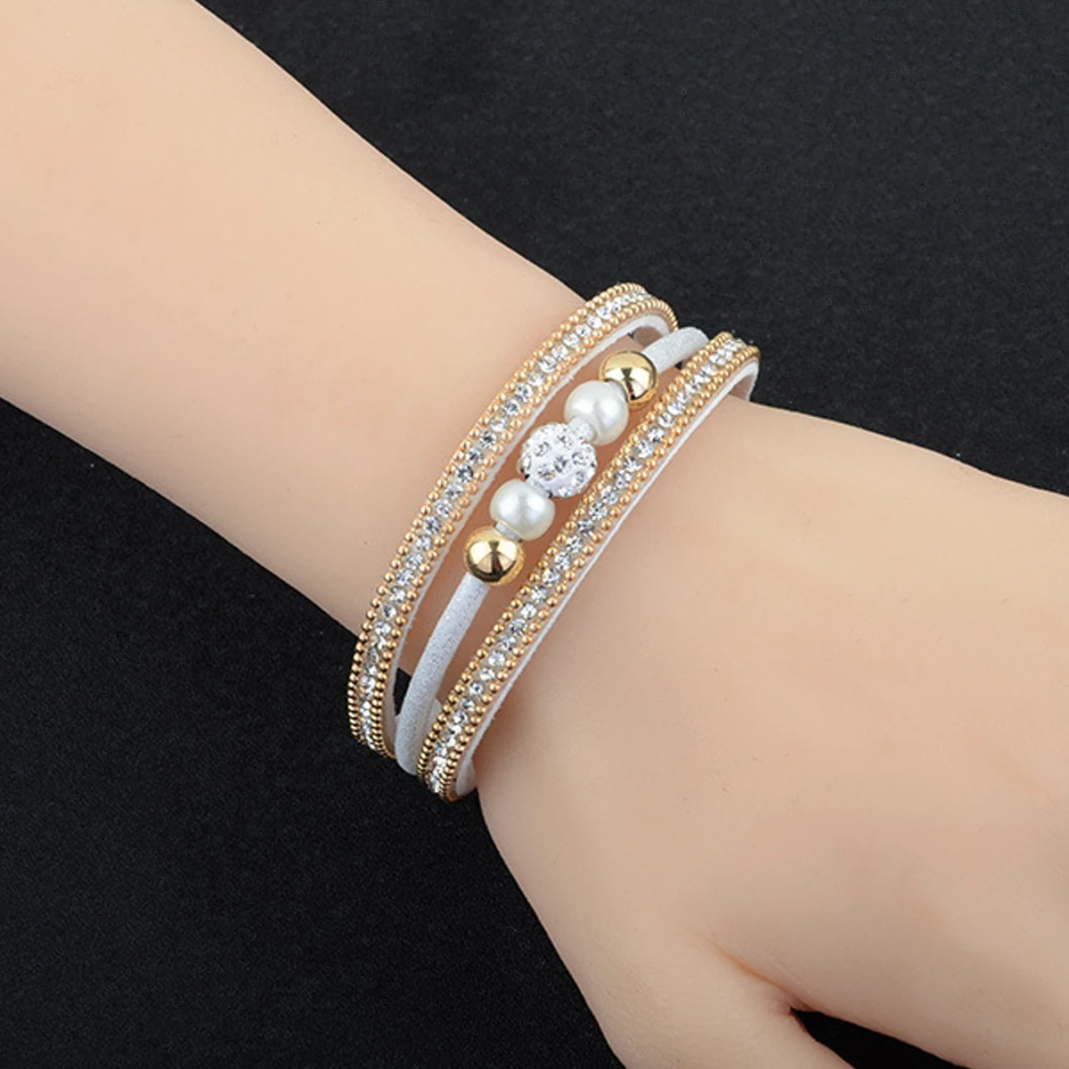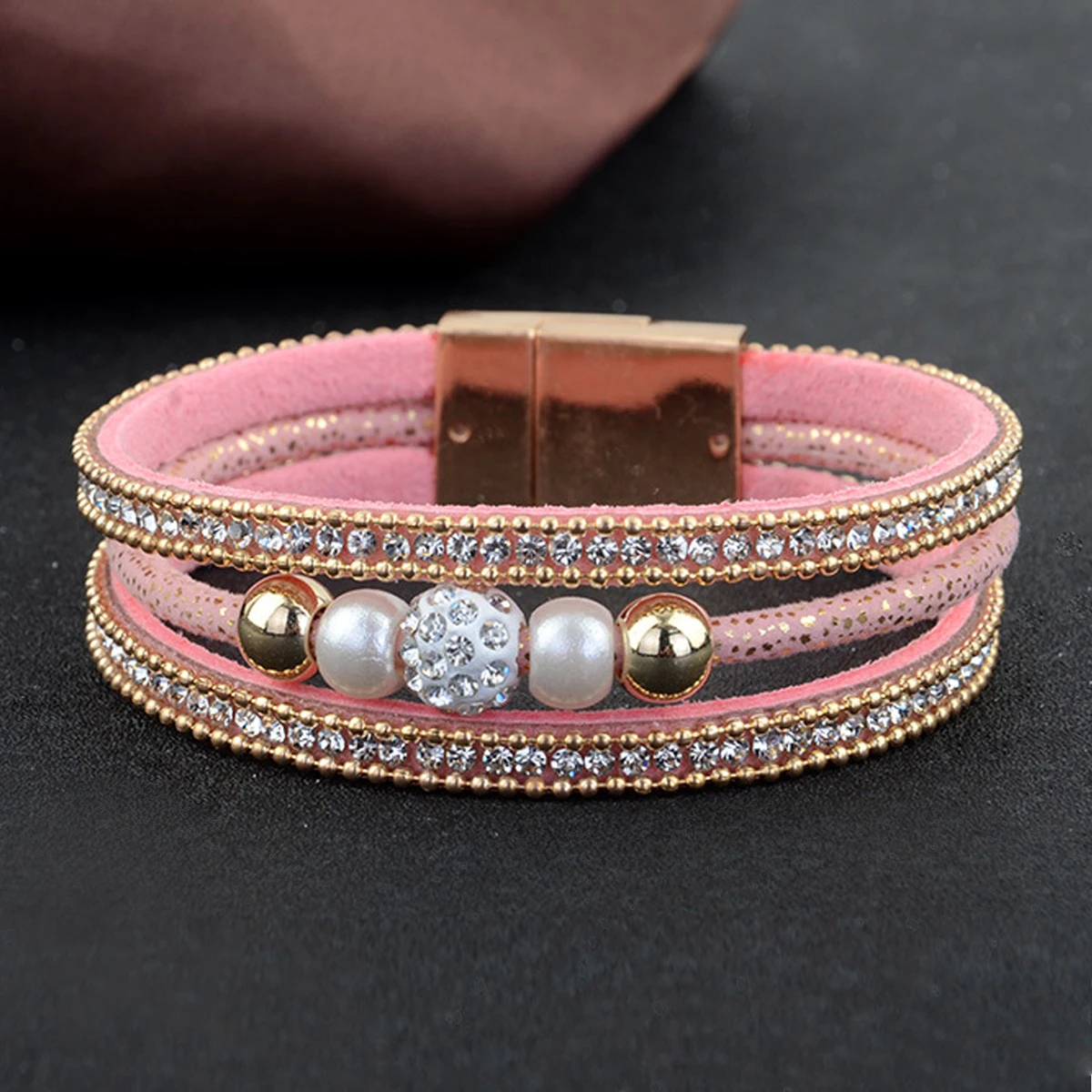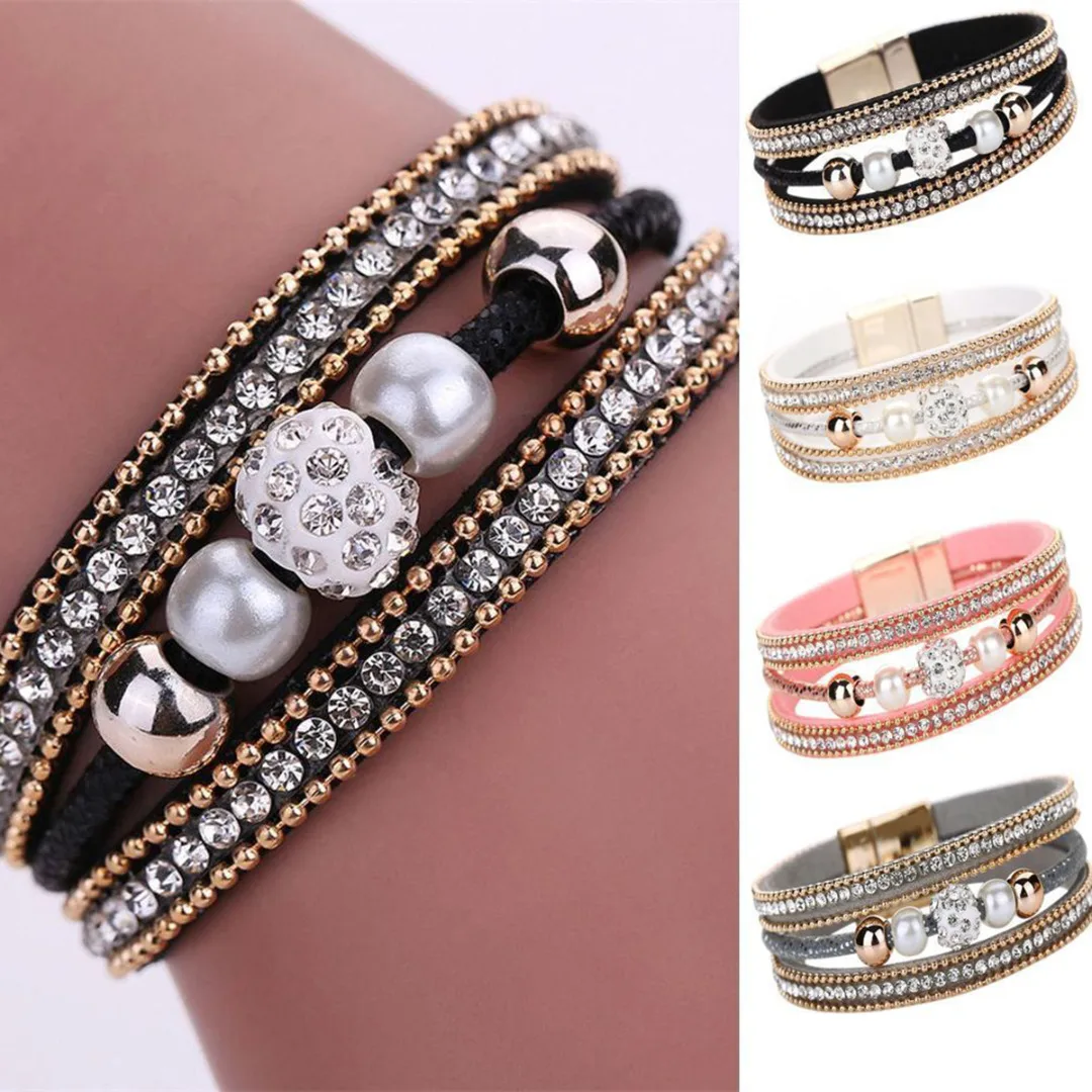 Model Number:Crystal beaded leather bangle,magnetic bracelet