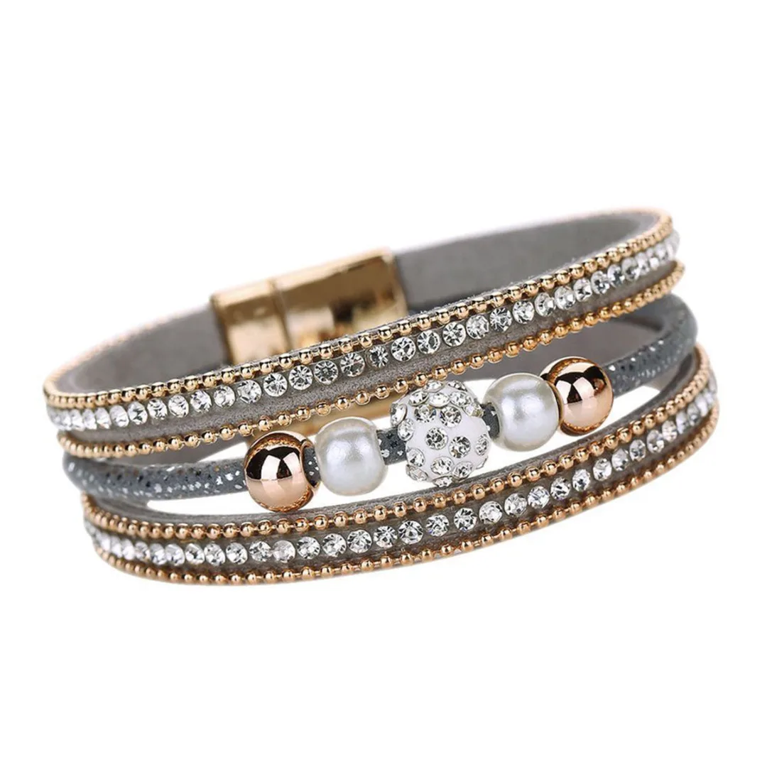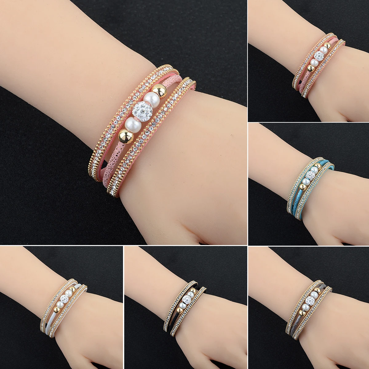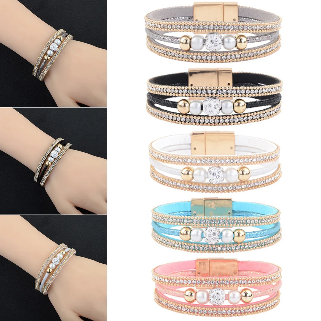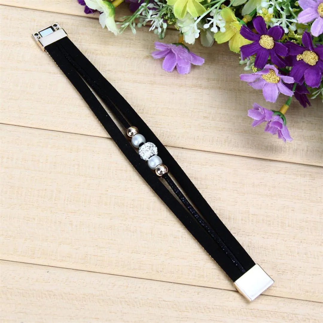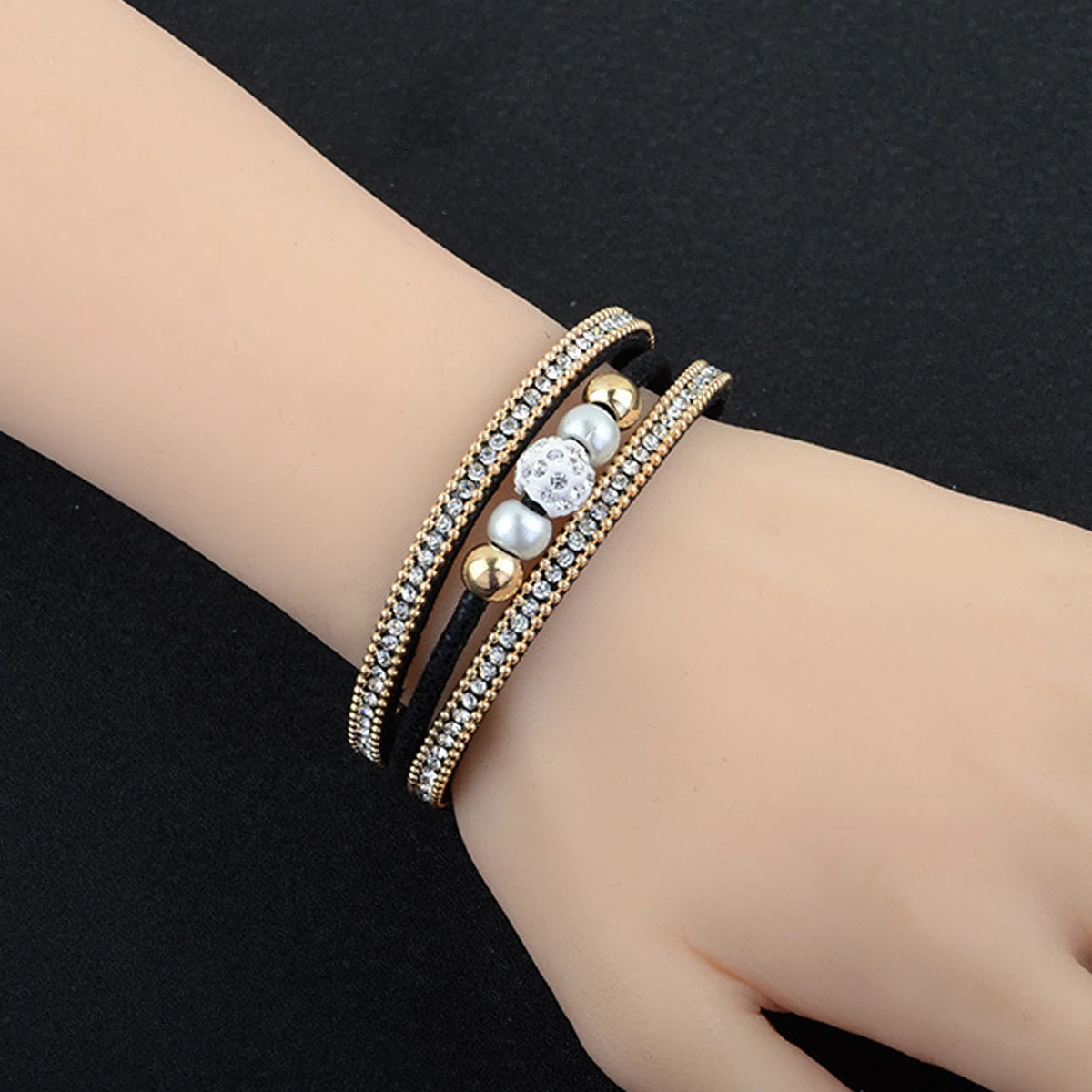 Model Number:Crystal beaded leather bangle,magnetic bracelet