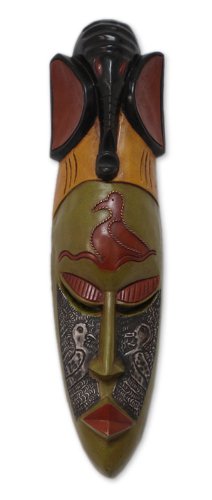 NOVICA Decorative Ghanaian Large Wood Mask, Green 'Krukudu Bird'
