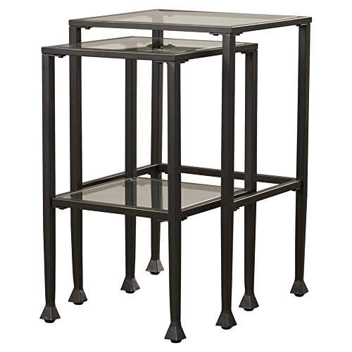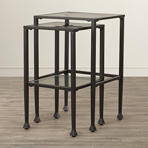-. Brand : Zipcode Design -. Color : Clear and Black -. Feature : Contemporary style / Glass and metal construction / Sabrina collection / Top Material Details: Tempered glass / Overall Product Weight: 24.5 lb. | Large Table: 24'' H x 17.75'' W x 14'' D | Small Table: 23.5'' H x 16'' W x 14'' D -. ProductGroup : Furniture -. ProductTypeName : HOME_FURNITURE_AND_DECOR -. Title : Sabrina Contemporary Style 2 Piece Square Nesting Table Set made with Metal and Glass in Clear and Black (Large Table) 24'' H x 17.75'' W x 14'' D in. (Small Table) 23.5'' H x 16'' W x 14'' D in.