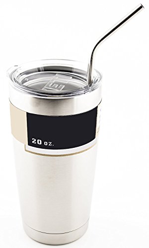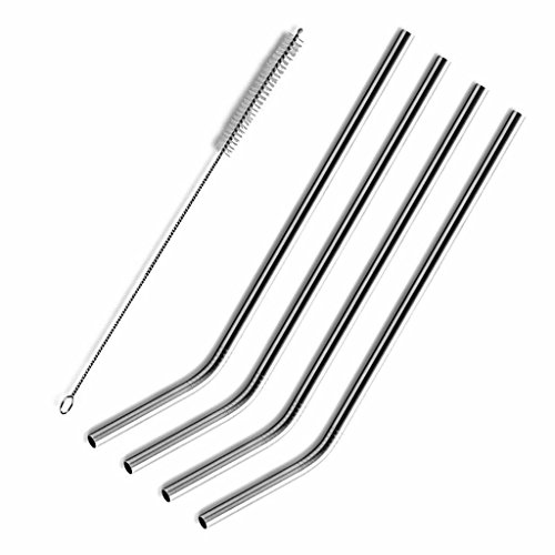 Christmas Gift XJ-Home Stainless Steel Drinking Straw Elegant Brushed fits 20 oz Rambler To Go Vacuum Mugs,Free with Cleaning Brush Included,Set of 4