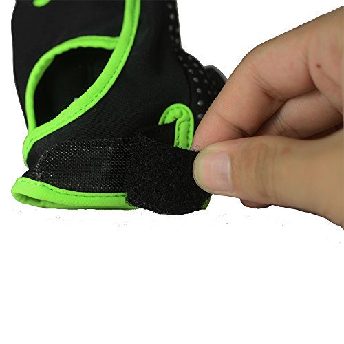 -. Feature : Palm Width: S (2.95-3.11"),M (3.11-3.34"), L (3.34-3.74"), XL (3.74-4.13"),XXL (4.13-4.52") / Designed specially for sports lovers, Safe for washing, breathable performance,Specially designed to provide comfortable compression and support / Light&thin gel padding on the palm,help increase your grip and make you control the handlebar more sensitive and accurate / Tear-off design for easy removal / can Touch Screen with Fingers for convenient use of mobile devices without moving gloves