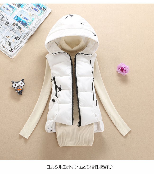 | 商品名 | 中綿ベスト 中綿コート 中綿ベスト レディース フードダウンベスト ノースリーブ 前開き ショート丈 無地 2017秋冬新作 |
