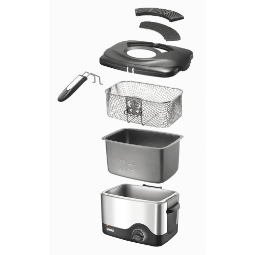 -. Feature : 1200 W, 230 V~, 50 Hz. Füllmenge Fett max. 1,5 Liter / Wärmeisoliertes ¿Cool-Touch¿-Gehäuse. Für ca. 500 g Pommes. Kompaktes Edelstahlgehäuse. / Frittierbehälter und Frittierkorb entnehmbar. NICHT Spülmaschinen geeignet. Handgriff einklappbar. Abnehmbarer Deckel mit Sichtfenster. / Aktivkohlefilter zur Geruchsvermeidung im Deckel. Kontrollleuchte. / Maße: 29,7 x 21,5 x 20,5 cm (L x B x H). Farbe: Edelstahl/ Schwarz
