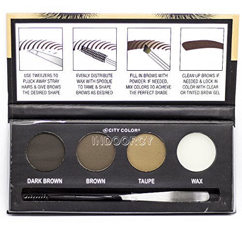 -. Title : City Color Eyebrow Kit Palette Tweezer Dual-ended Applicator 3 Colors Powder, wax