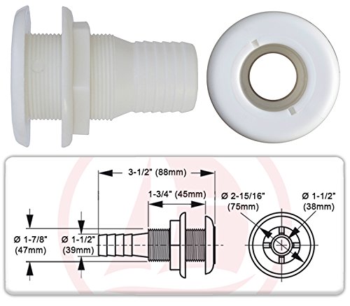-. Title : 1-1/2” Through Hull Mushroom Head Barbed Plastic White Thru Hull - Five Oceans BC-1867