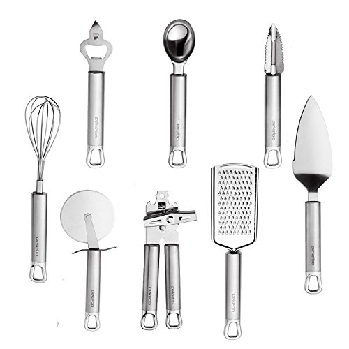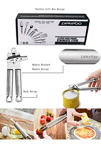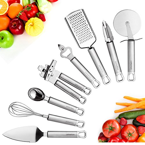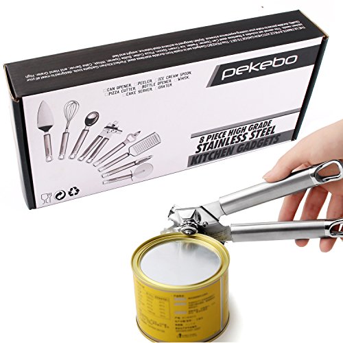 Product Description NEED A KITCHEN GADGET SET THAT OFFERS EVERYTHING YOU NEED WITHOUT HAVING TO SPEND A FORTUNE BUYING EACH PIECE INDIVIDUALLY? Introducing the PEKEBO 8-Piece Kitchen Gadgets Sets - the Perfect Essential Home Cooking Tools you will ever need for Your Everyday Kitchen Needs. Why purchase a combined gadget set? The stainless steel is very high-grade, this set is a great option if you're looking for presents for friends and family, gifts for new homeowners and students, or just to treat yourself! What does PEKEBO set include? ? Can opener:8.5" *2.2" ? Pizza Cutter: 9" * 3.3" ? Hand Grater: 10" * 2.4" ? Ice Cream Scoop: 8.7" *1.7" ? Whisky: 11" * 1.96" ? Bottle opener: 10" * 2.4" ? Cake shovel: 11"*2.2" ? Peeler: 10" * 1" Which benefits does PEKEBO set provide? ? High-grade design ? High quality durable stainless steel ? Multi colors to match any kitchen surrounding ? Heat resistant up to 410°F ? Easy to clean- either a quick hand wash or dishwasher ? Gadget has a curved ergonomic handle for a comfortable grip ? High end, modern stand for easy storage . Are you looking for a long lastest kitchen gadget set? The exceptional PEKEBO Gadget set will get you covered. Plus, you are fully covered under our extended one year warranty. ORDER NOW to Avoid Disappointment and Start Benefiting from this Deluxe Kitchen Utensil Set! 0