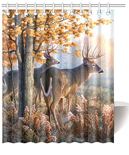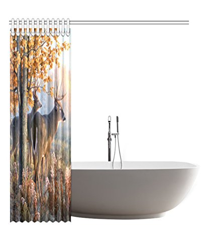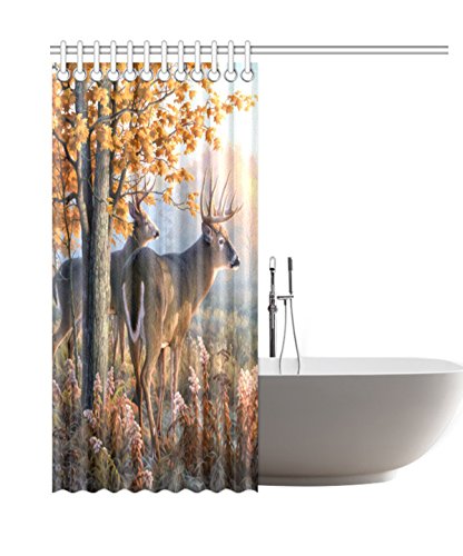 InterestPrint Deer Waterproof Polyester Fabric 60 (w) x 72 (h) Shower Curtain and Hooks
