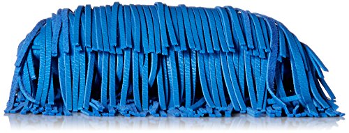 Convertible clutch encased in tiered fringe featuring top-zip closure