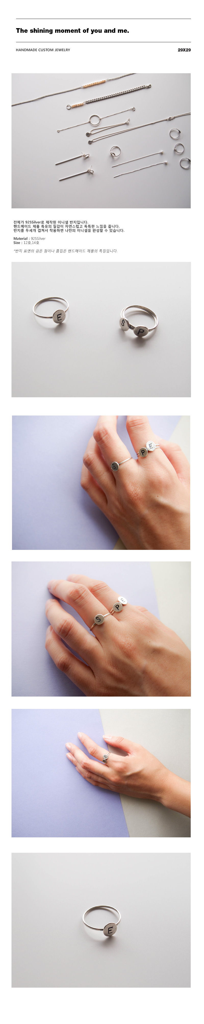 원 안에 알파벳 이니셜이 각인된 은반지입니다. 925실버로 제작되었습니다.