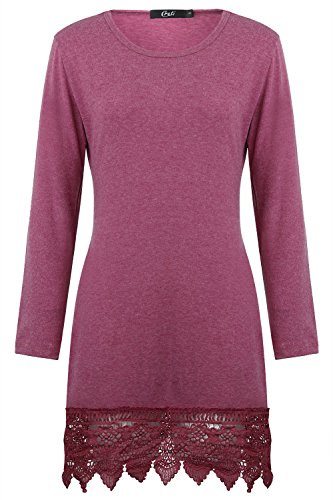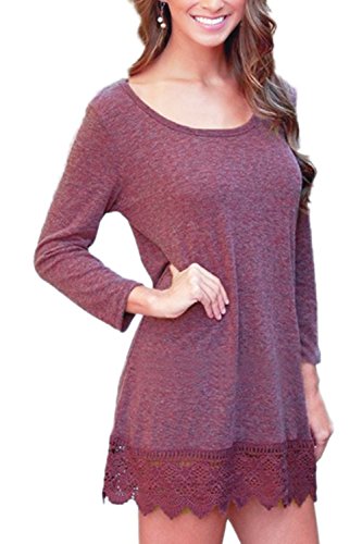 -. Title : Creti Women's Casual Long Sleeve Lace Stitching Trim T Shirt Tunic Dress