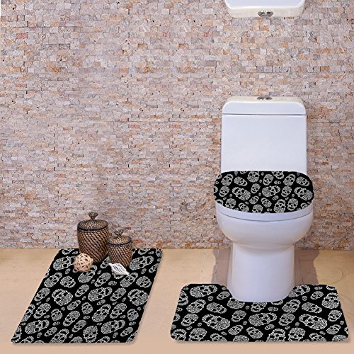 -. Title : Bigcardesigns 3 Pce Bath Mats & Seat Cushion Set Flanne Skull P.R.Inted