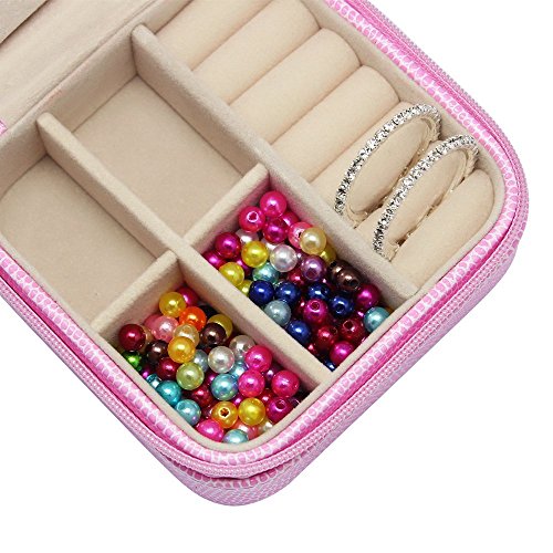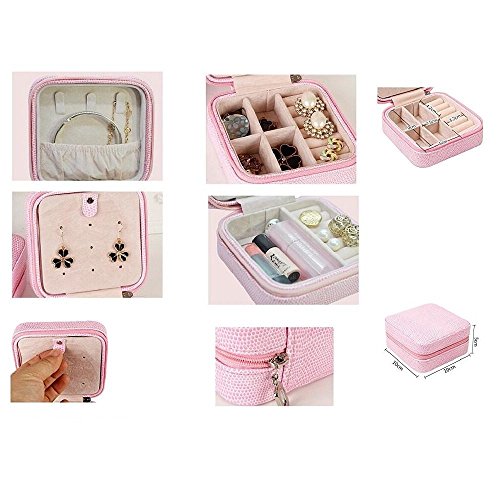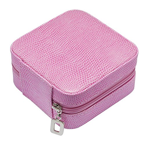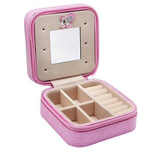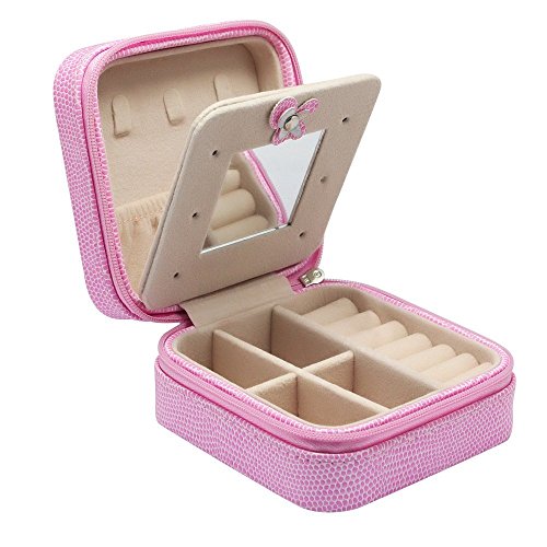Homgaty Portable Travel Jewellery Box With Mirror,PU Leather Storage Case For Earring Ring Necklace Cosmetic Pink