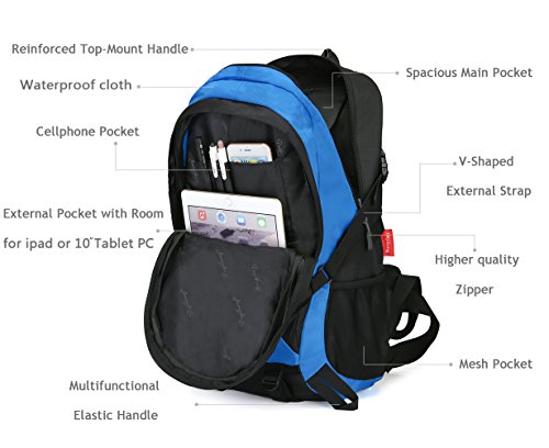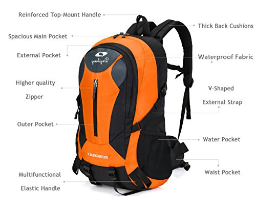 -. Feature : Material:Highly tear resistant nylon,water-resistant. Multiple layers of more practical, increase capacity. Travel more convenient, the backpack the thickening sponge and air vent protection ; it can effectively reduce the burden. Suitable for hiking camping climbing traveling cycling all outdoor activities Capacity:30L; Size: 20" x13.6" x8" (Hx W x D) Package includes: 1 * backpack 1*waterproof bag.