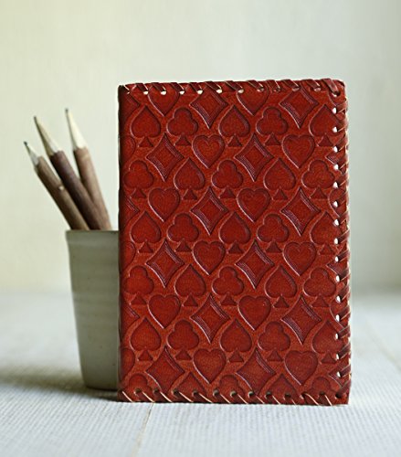 Store Indya Handmade Personal Organizers Leather Journals Diary Notebook Travel Record Book with Playing Card Motif Red Color (6 X 4 Inches)